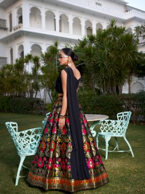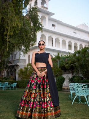 Black Banarasi silk Lehenga For Women