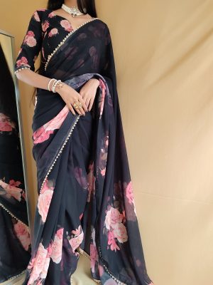 black, saree, shop by category, shop by collection, Shop by colour, YANANTI