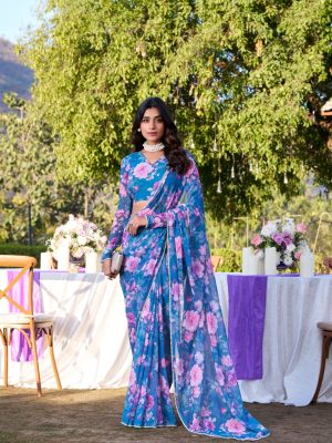 blue, saree, shop by category, shop by collection, Shop by colour, YANANTI