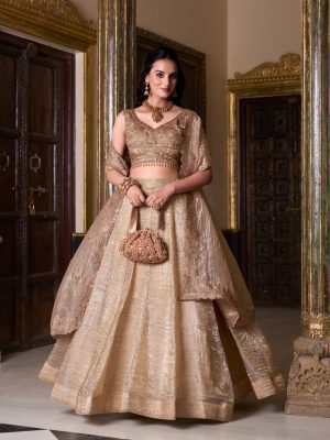 Gold Crush Plain Lehenga For Women