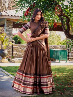 Brownish Red Rangoli Silk Lehenga For Women