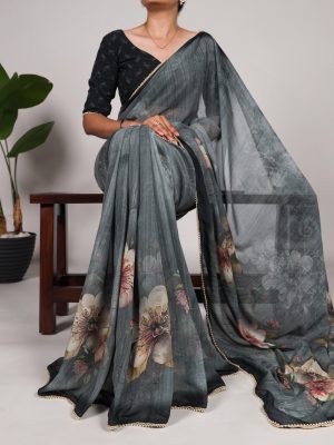grey, saree, shop by category, shop by collection, Shop by colour, YANANTI