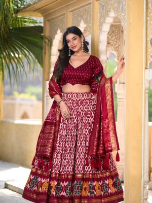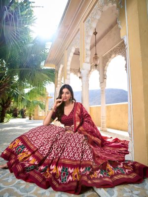 Tussar Silk Ikkat Printed Lehenga For Women
