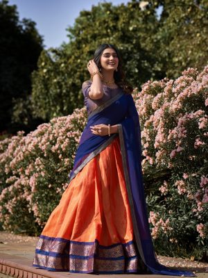 Orange Jacquard Lehenga For Women