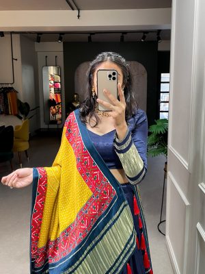 Bandhej Printed Gaji Silk Gown For Women