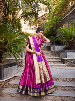 Wine Vichitra Silk Lehenga For Women