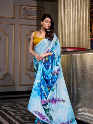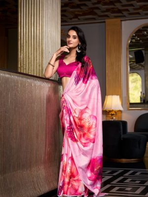 Satin Silk Floral Printed Saree For Women