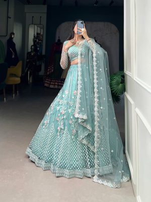 Net Sequins Embroidery Lehenga Set for Women
