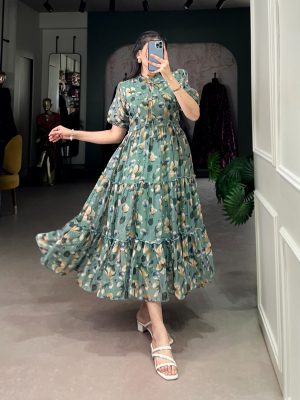 Green Printed Frock For Women