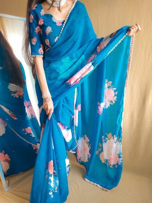 blue, saree, shop by category, shop by collection, Shop by colour, YANANTI