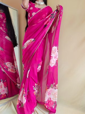 pink, saree, shop by category, shop by collection, Shop by colour, YANANTI