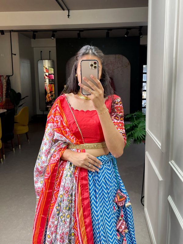 Blue Chinon Laheriya Printed Lehenga For Women