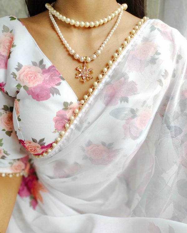 Saree work : Printed with pearl lace border