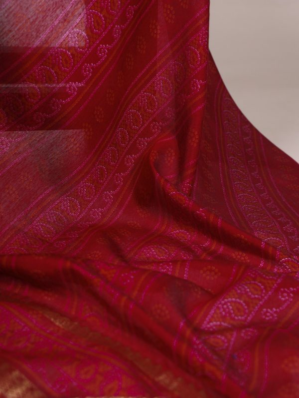 Blouse Work : Bandhej Print With Zari Weaving Work