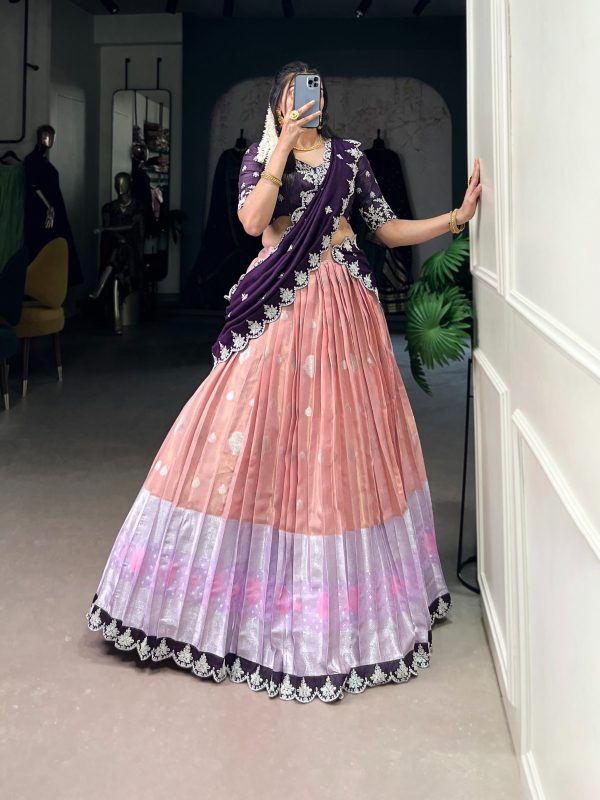 Lehenga Work : Zari Weaving Work With Sequins and Thread Embroidery Scallop Lace Border