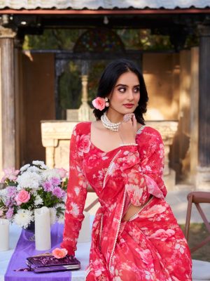 red, saree, shop by category, shop by collection, Shop by colour, YANANTI